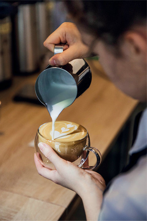 Inspirovali jste se v zahraničí, nebo přišel impuls odjinud? Na začátku jsem o výběrové kávě vůbec nic nevěděl. Při šel za mnou obchodní zástupce s nabídkou a první ochutnávka mě upřímně odradila – bylo to špatně připravené a nechutnalo to. Zaujala mě ale myšlenka, že káva funguje podobně jako čaj: má své pěstitele, odrůdy, terroir. A protože jsem měl k čajům vždy blízko, začal jsem se o to zajímat víc. Když jsem pak výběrovou kávu ochutnal správně připravenou, úplně mě to nadchlo a rozhodl jsem se, že ji chci mít i v naší kavárně.