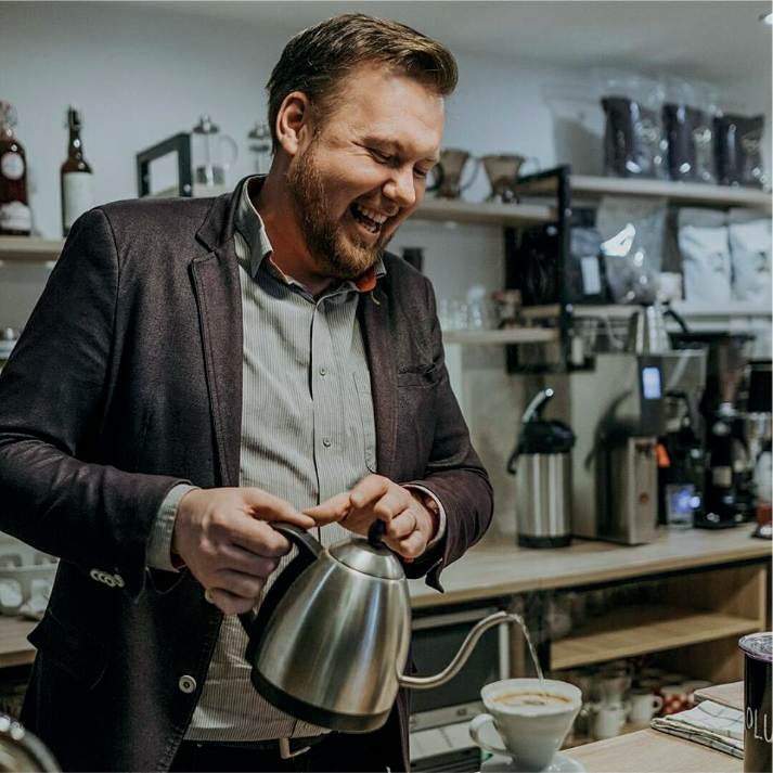 Bylo vaším záměrem vybudovat rovnou síť kaváren? Myšlenka se zrodila vlastně náhodou. Můj původní za městnavatel měl čtyři provozovny a já jsem si „vylosoval“ kavárnu, za kterou jsem měl zodpovědnost, a začal tam dělat změny – lepší kávu a později i snídaně, které tehdy skoro nikdo v kavárnách nenabízel. Nadřízená tomu ne věřila, ale já ano, a tak jsem se rozhodl odejít a otevřít si vlastní podnik. Začínal jsem s kolegyní a pěti tisíci korunami v kapse, což je dnes skoro úsměvné. O síti kaváren jsme tehdy vůbec nepřemýšleli, šlo spíš o nadšení a touhu dělat věci jinak.
